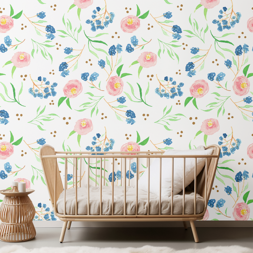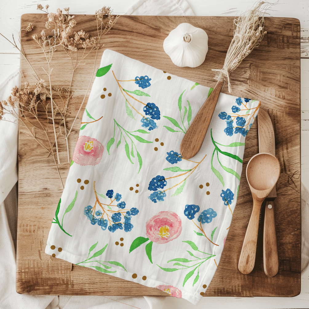 A soft and beautiful pattern featuring loose florals--perfect for clothing and home decor. Painted with Holbein watercolors on Arches 100% cotton watercolor paper.