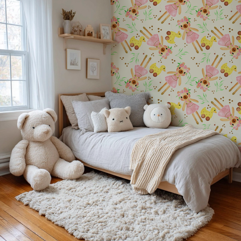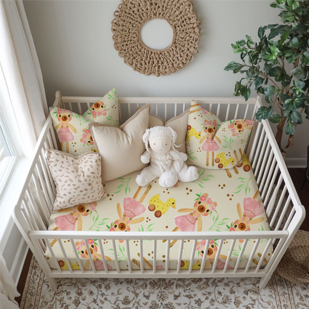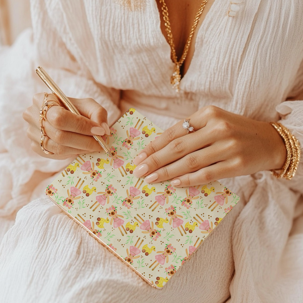 A beary sweet hand painted children's pattern featuring boho bears with floral crowns. Painted with Holbein and Gansai Tambi metallic watercolors on Arches 100% cotton watercolor paper.